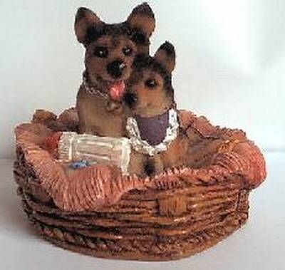 Zwei brave Hunde im Korb, ca. 7 x 7cm aus Polystone